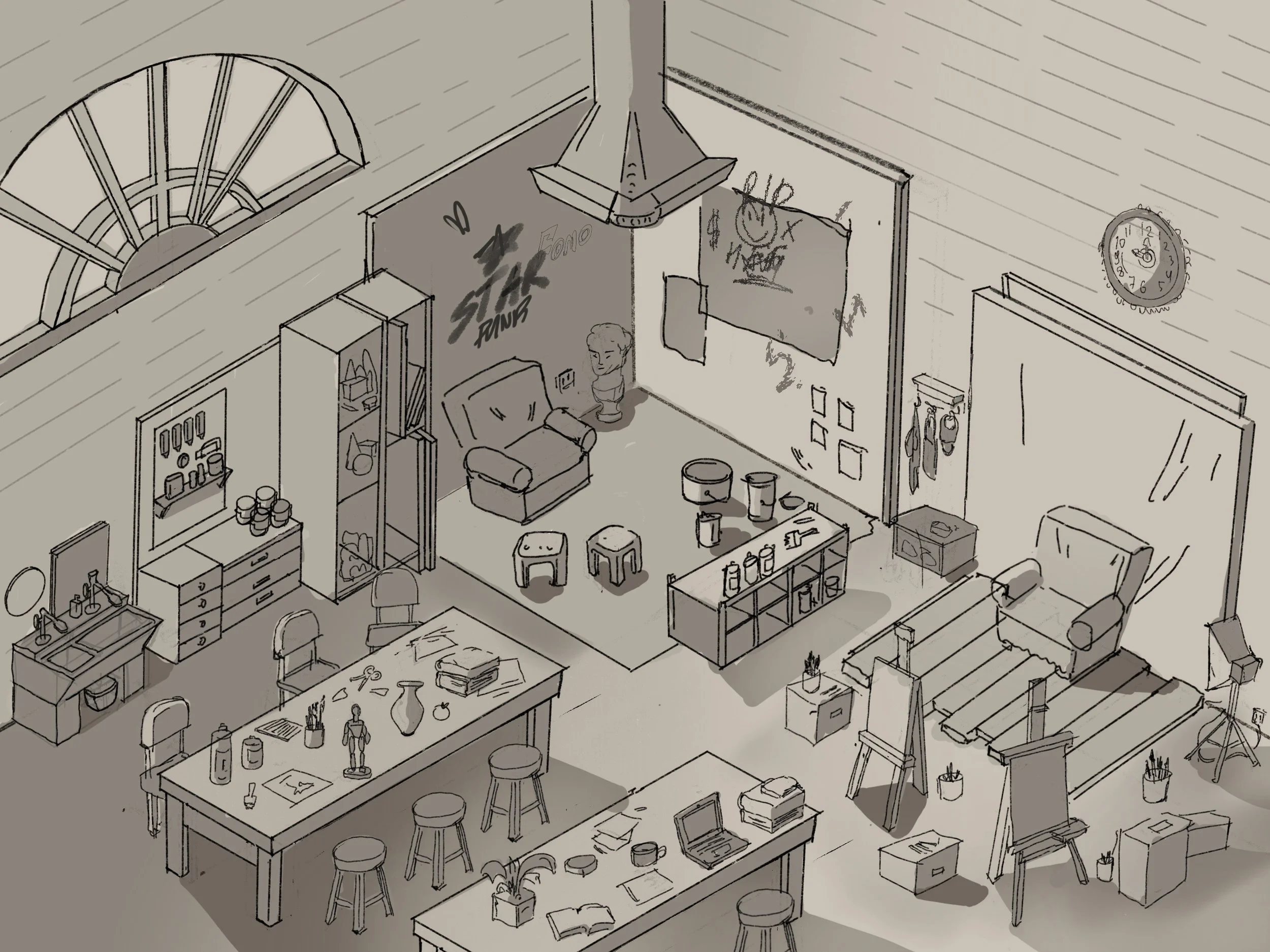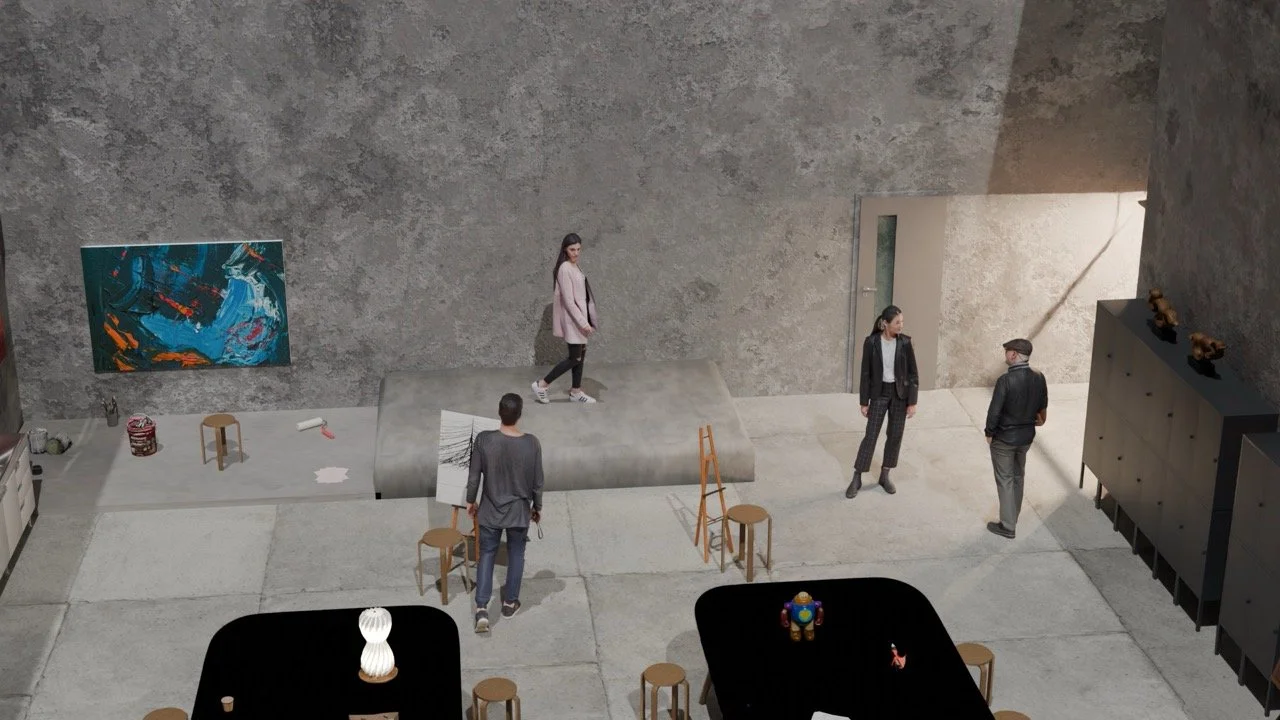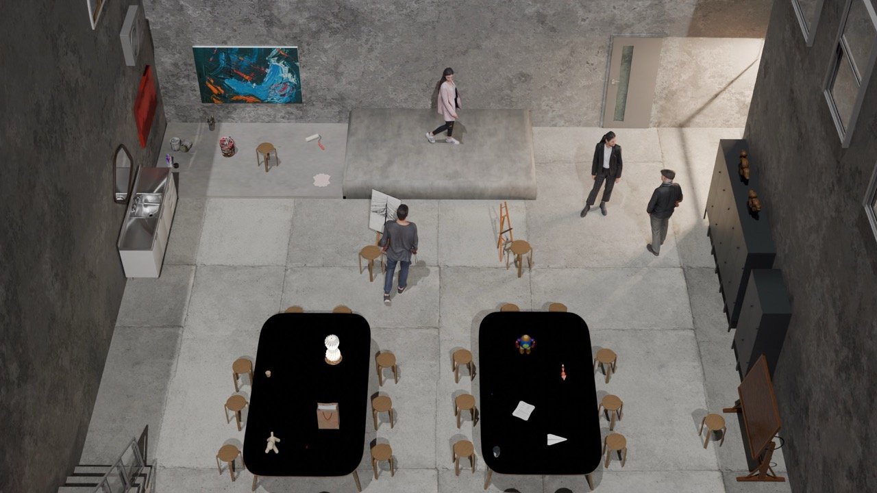 The Open Atelier is a multifunctional creative space designed to encourage artistic exchange, experimentation, and collaboration. It offers a hybrid environment where artists can work independently while remaining open to spontaneous interaction. The space blurs the lines between studio, gallery, and community hub by fostering both focused production and informal creative exchange.