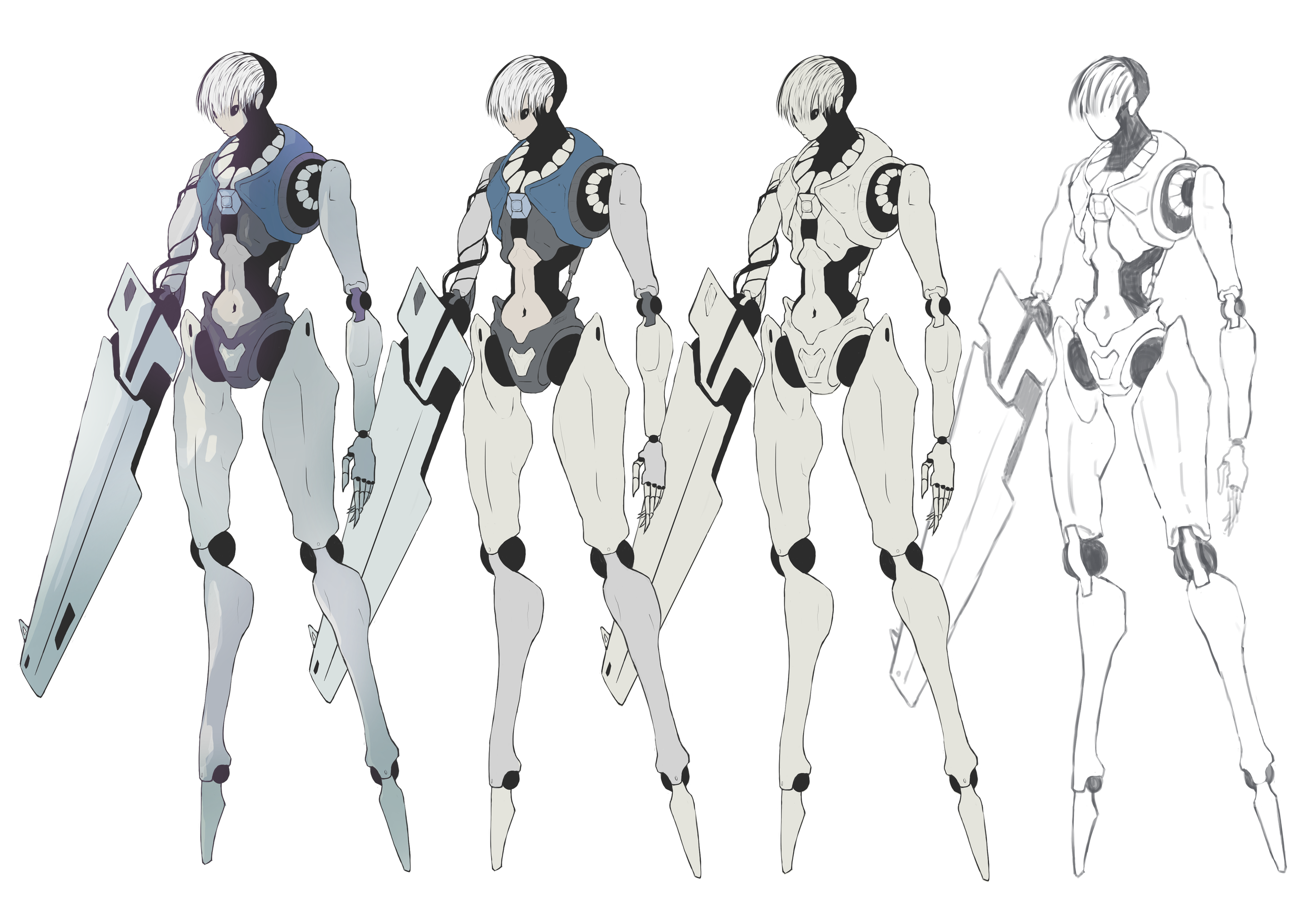 Over time, ELI went through multiple design iterations, both visually and conceptually. His appearance shifted from a standard cybernetic soldier to something more corporate and manufactured — reflecting the idea that he’s less a person and more a product of a system built on power and control. Each redesign focused on balancing sleek, commercial design with traces of what little humanity he has left.